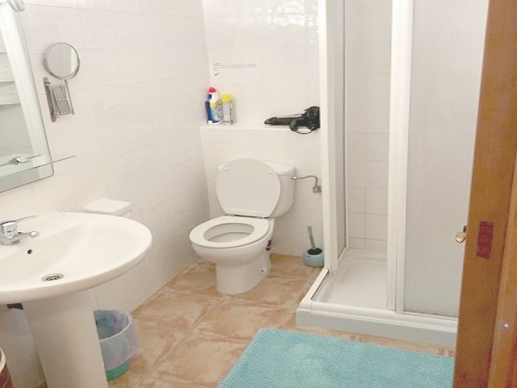 The bathroom has a good shower, washing table and there is also a washing machine in the apartment.